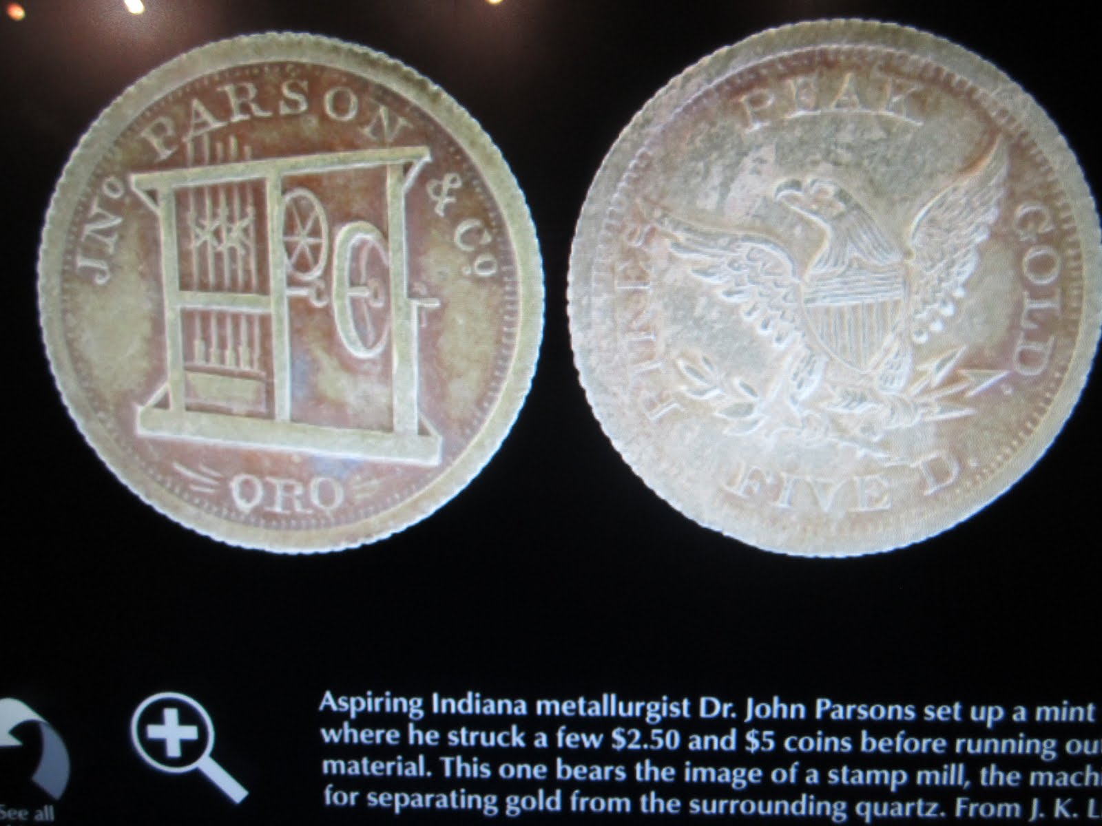 My favorite part of this museum by far was finally getting a glimpse of the elusive Tarryall coin! Jess and I were co-workers at the Tarryall River Ranch and while living in Colorado we spent a lot of time researching the history of the Tarryall area. We found out that Dr. John Parsons set up a mint at Tarryall and issued $20 gold ingots and subsequently, $2½ and $5 pieces were issued. The mint, which may have been located on the back of a wagon, operated only a few months. These coins are extremely rare and in our research we found that one was housed at the Smithsonian so we went looking for it and lo and behold there it was! It was super exciting to think of a little coin from the gold town of Tarryall is in the Smithsonian!